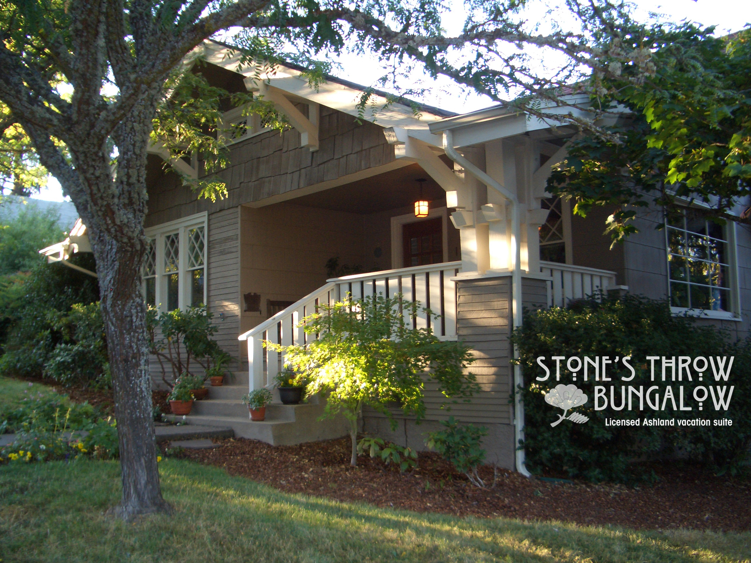 Just a stone’s throw to the plaza, a licensed one-bedroom vacation rental suite is tucked behind one of Ashland’s charming, historic craftsman-style bungalows.